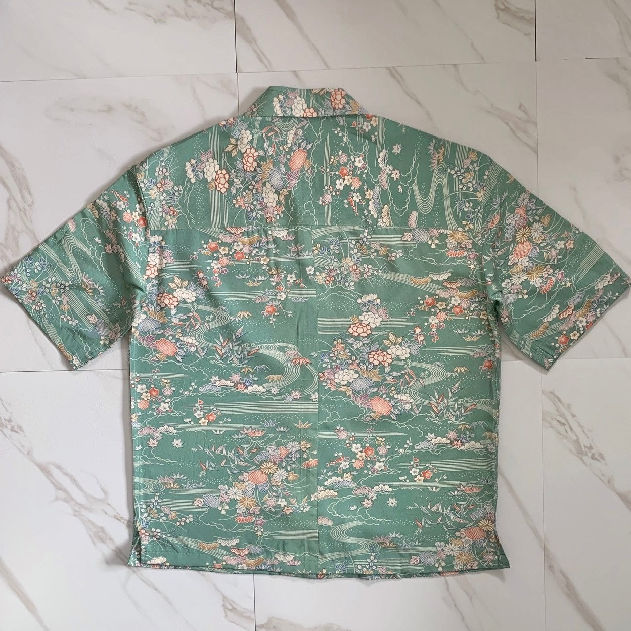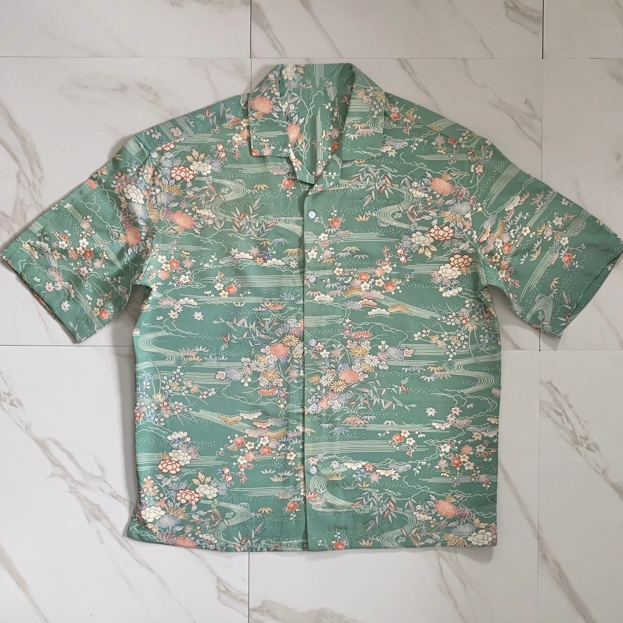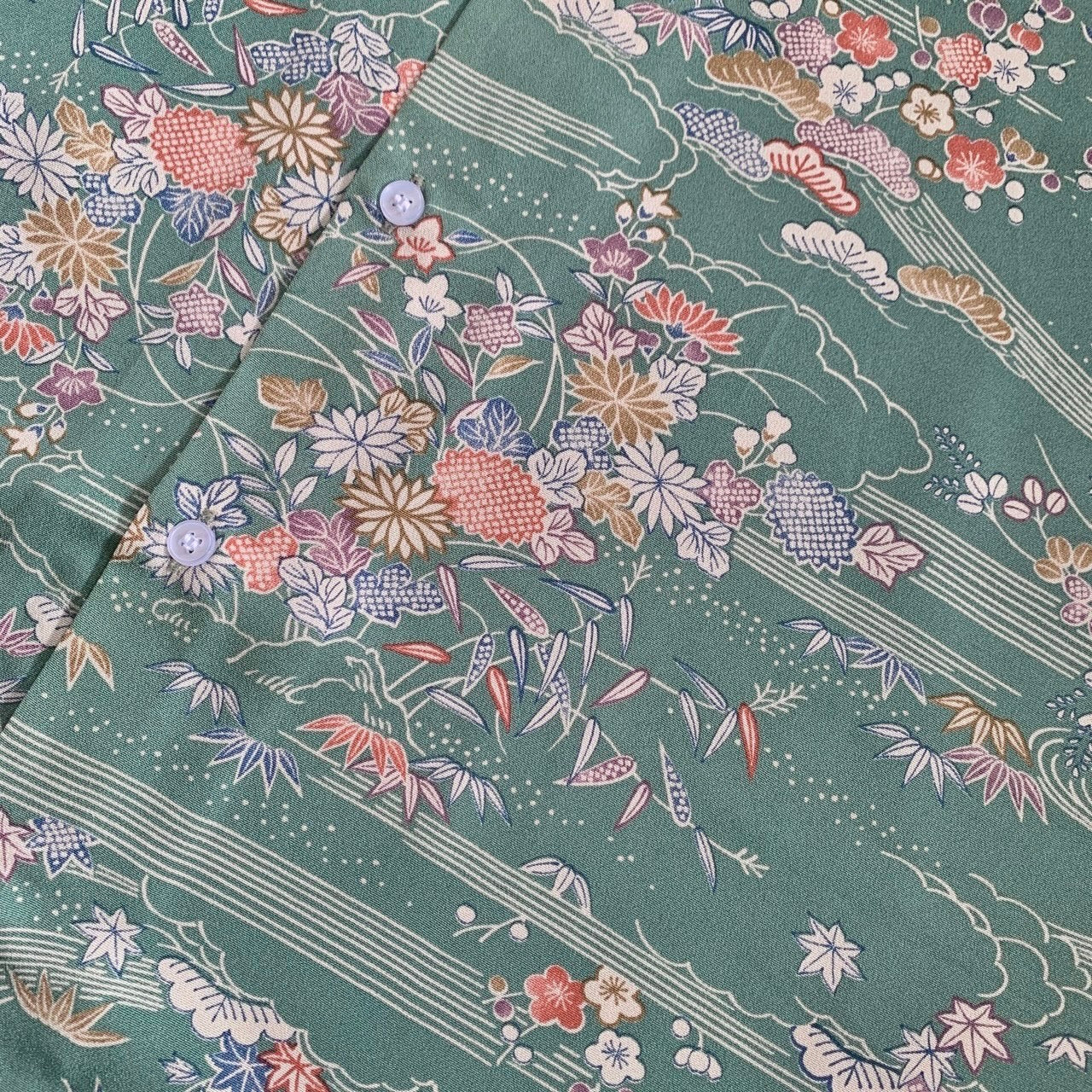 Half sleeve unisex silk shirt made from Kimono with lovely traditional Japanese taste flower motif.