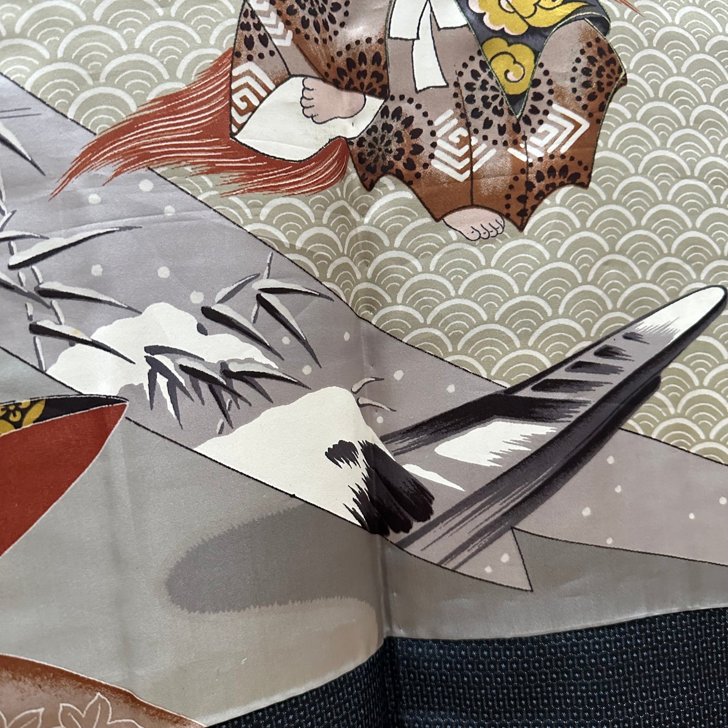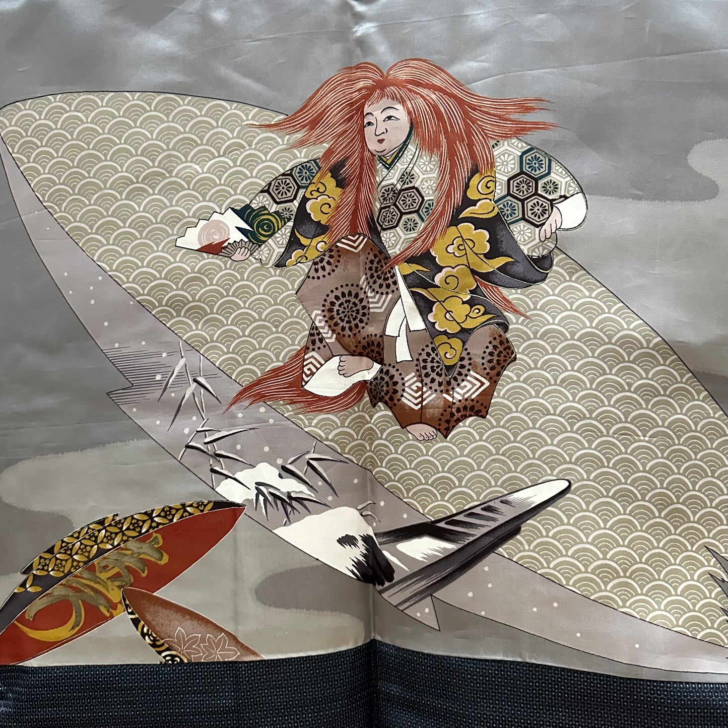 This is a vintage, hand-sewn, silk Haori, men’s jacket with unique and cool motif of Kabuki 歌舞伎, a traditional Japanese theatre.