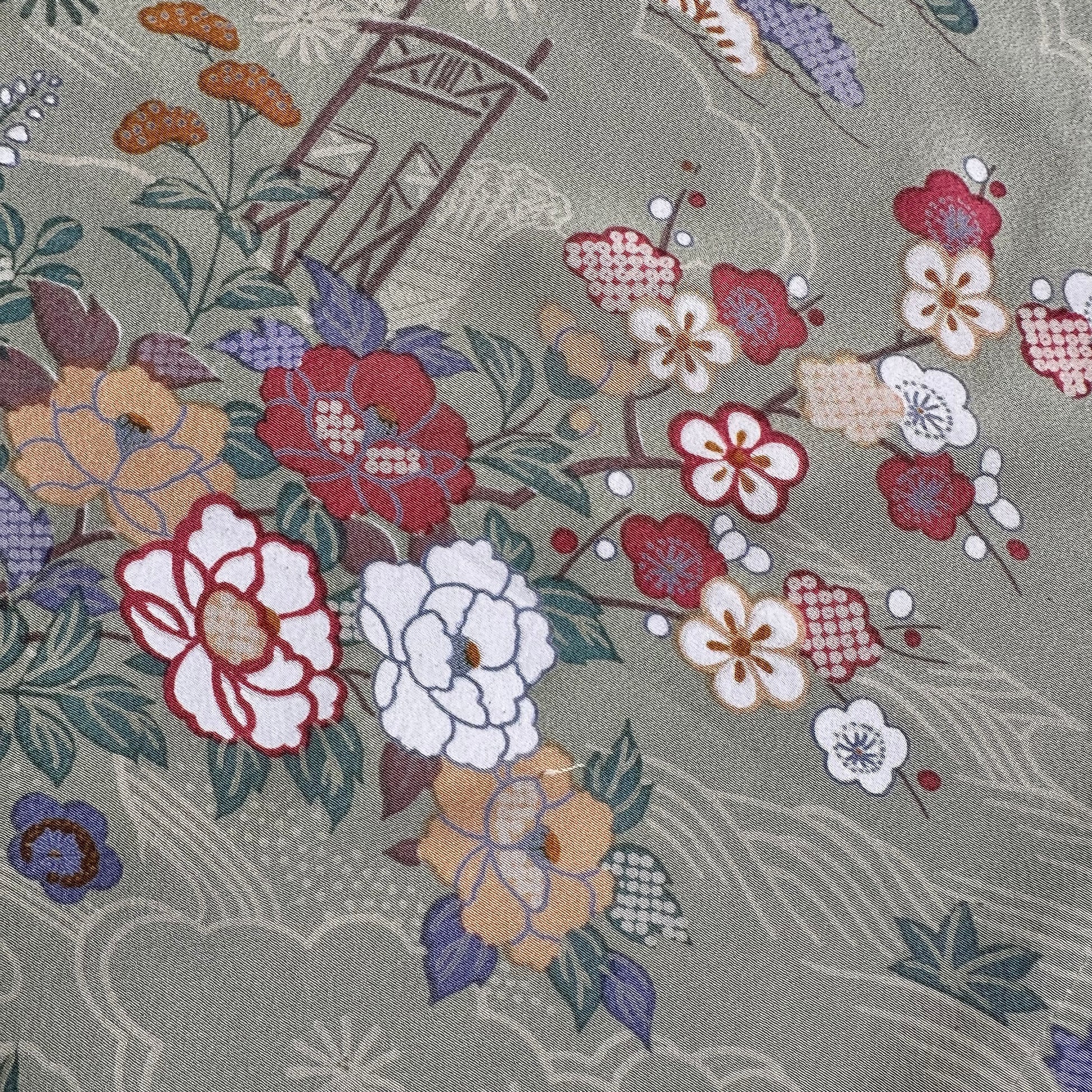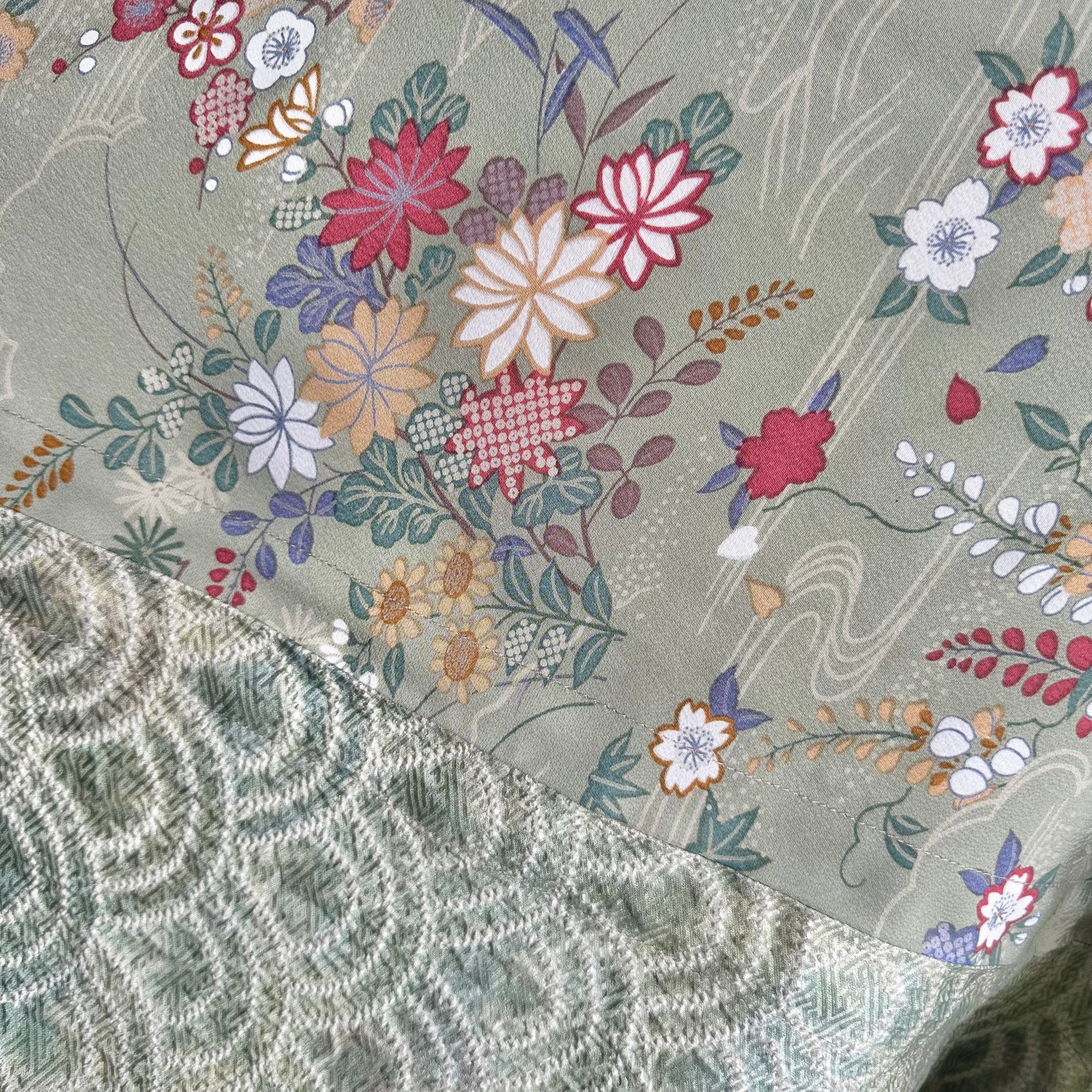 Silk scarf made of Vintage Komon Kimono and Shibori dye Kimono fabric.
