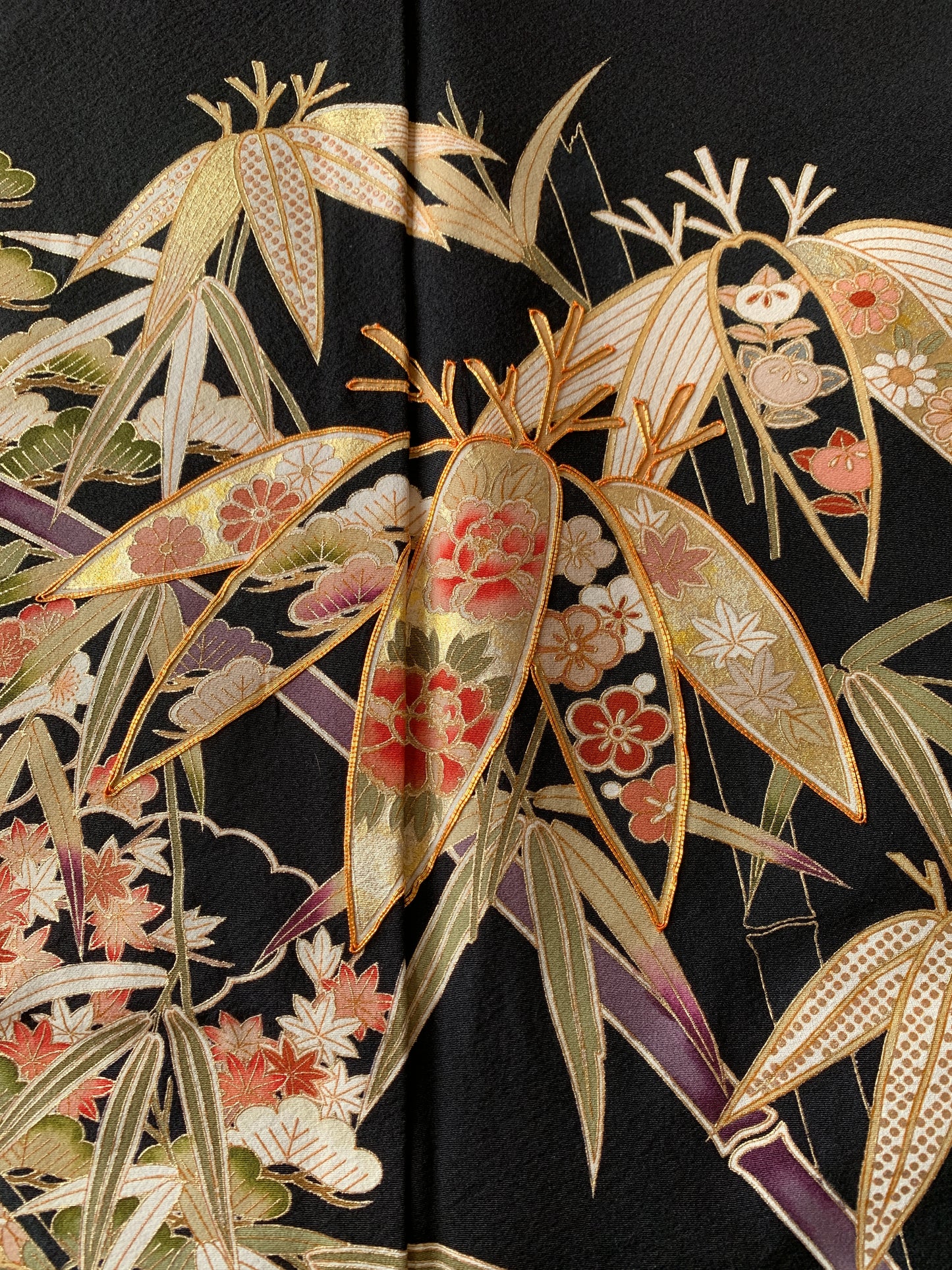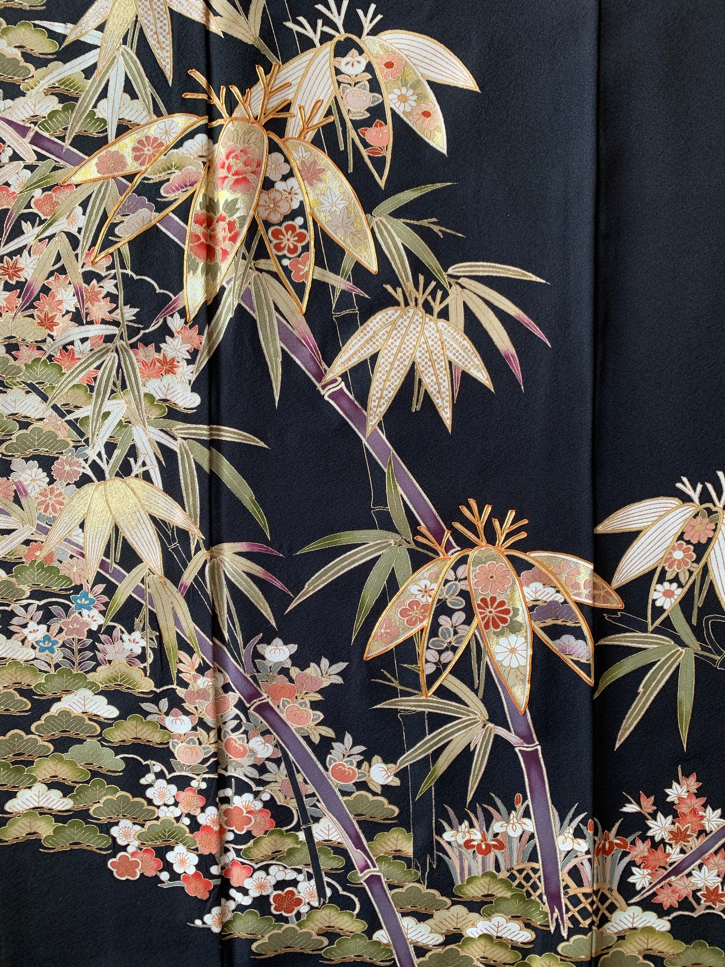 Kimono fabric for custom dress order, fabric#175 Kuro-Tomesode黒留袖