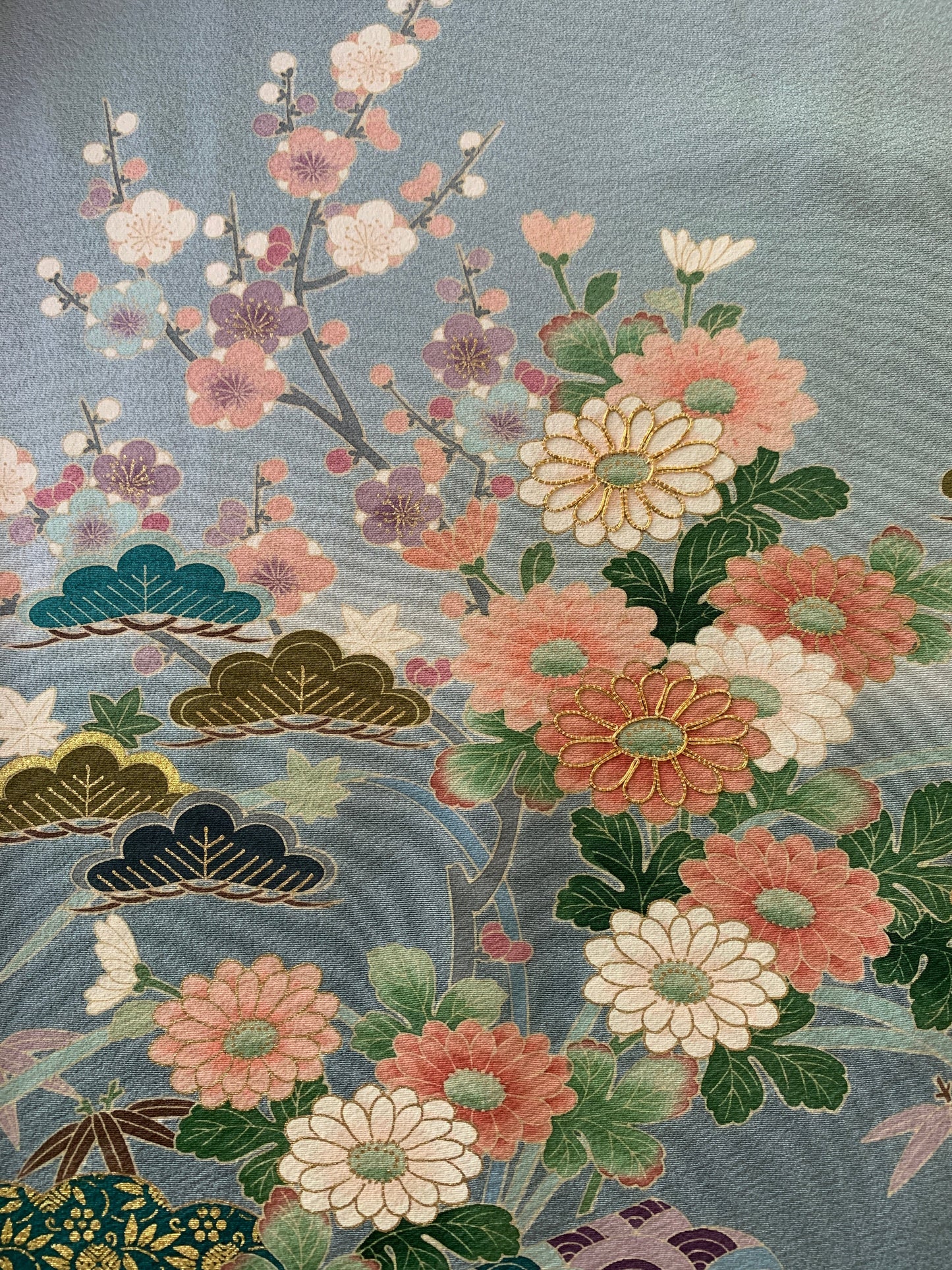 There are beautiful chrysanthemum, plum blossom and couple of birds motif.
