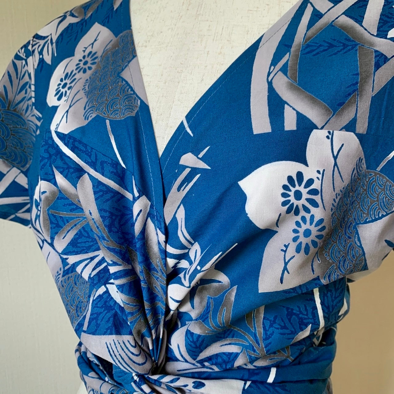 2 ways Woman’s cotton Yukata wrapped shirt, upcycled