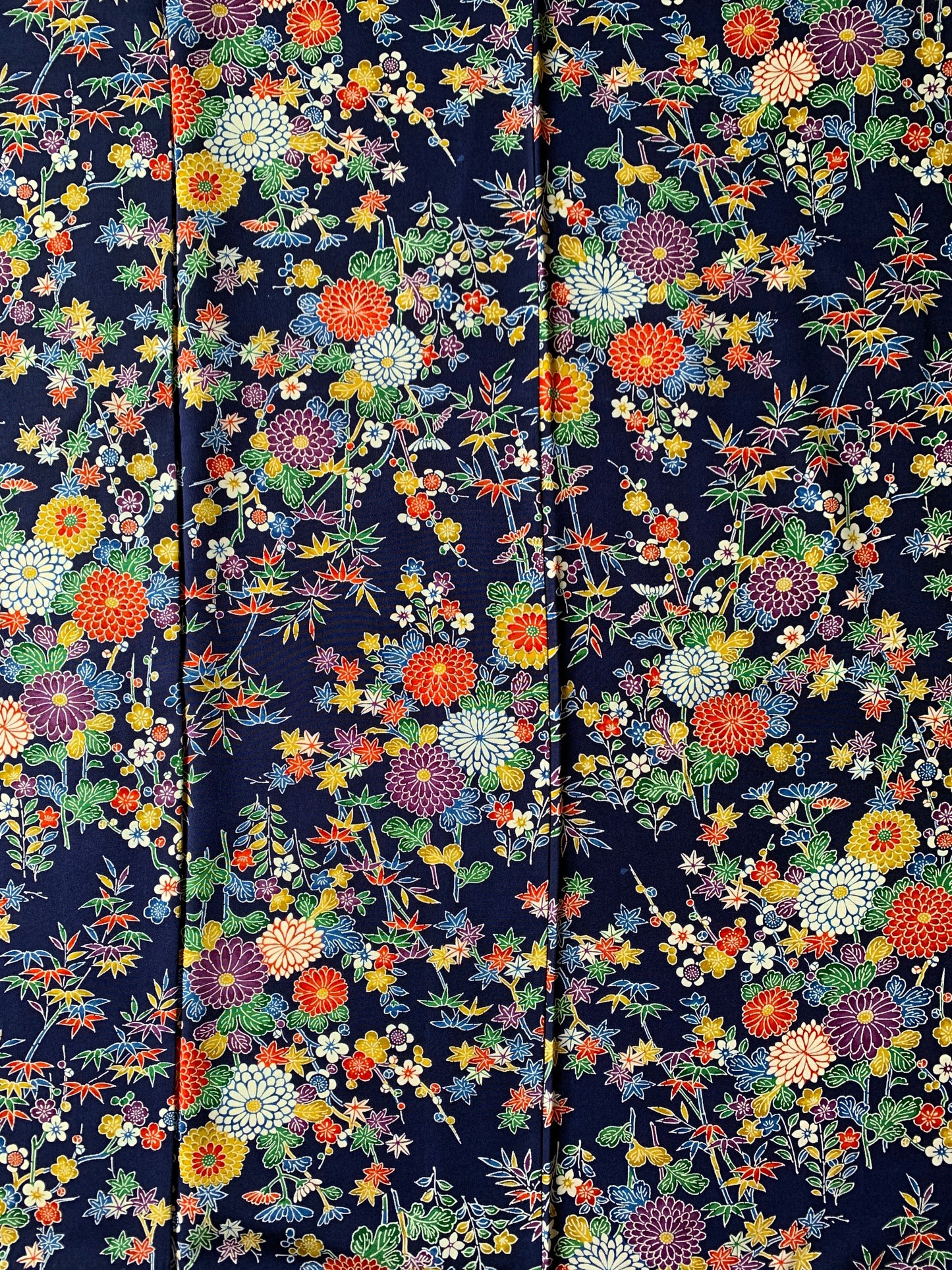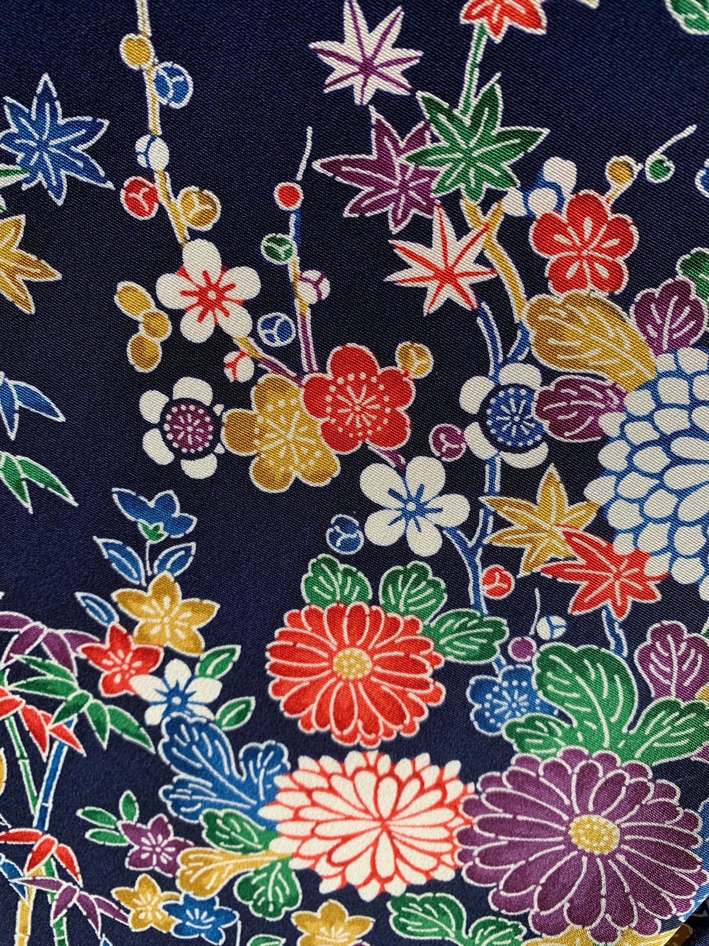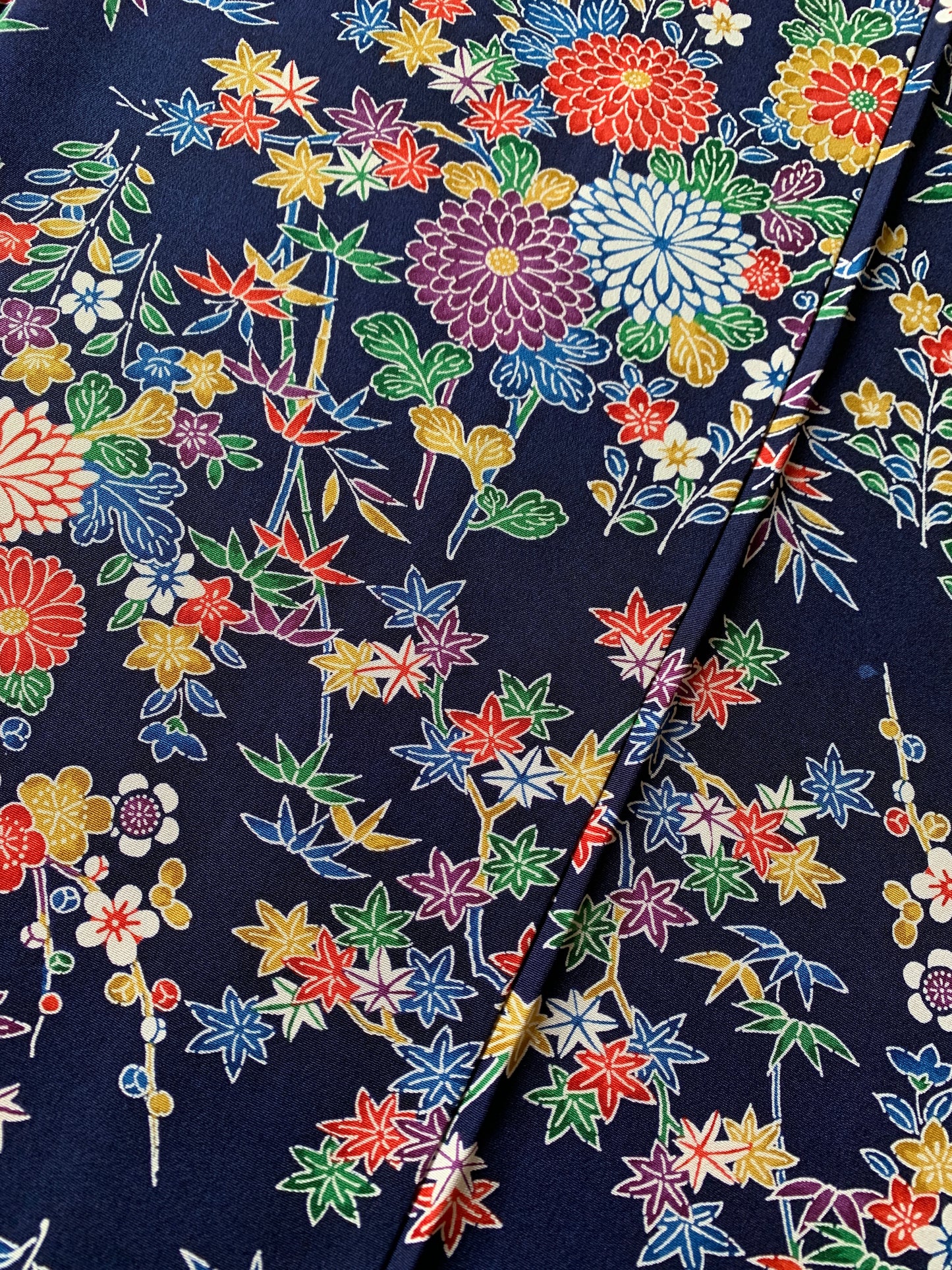 This is a silk Kimono fabric  in  dark blue for custom dress order.